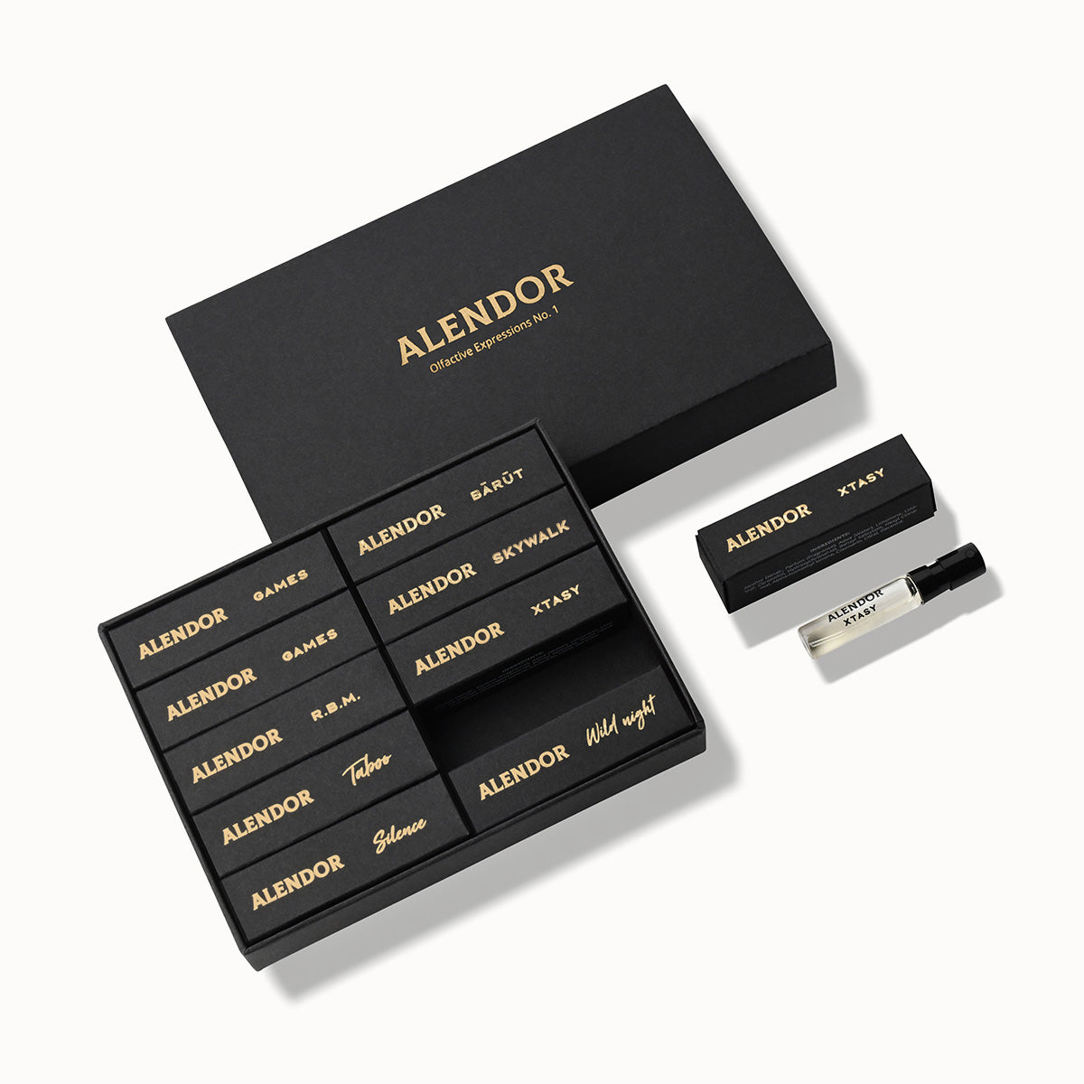 Embark on a journey through Alendor with this curated set of eight 1.5 ml vials, uniting the