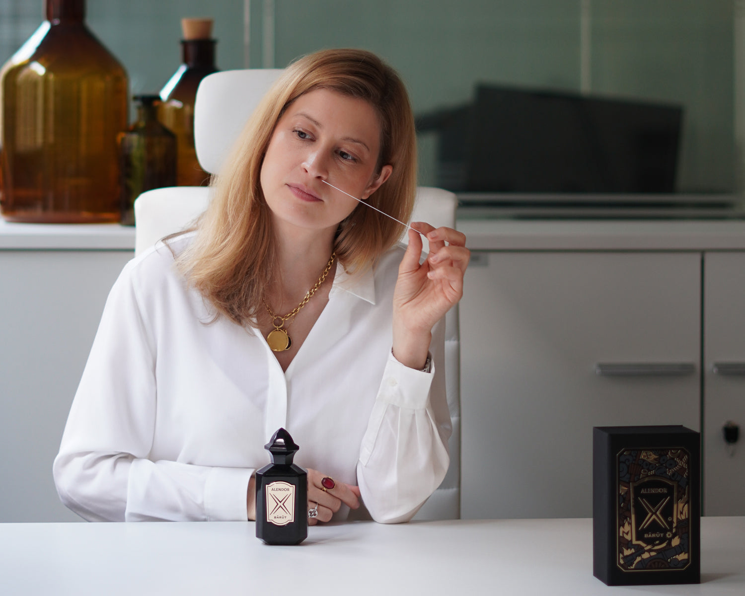 Claire’s interest in oenology led her to the rich and fast-moving world of perfume making, which brought all her passion together: “I already knew that I wanted to create, and I was excited by the art of composing blends”.